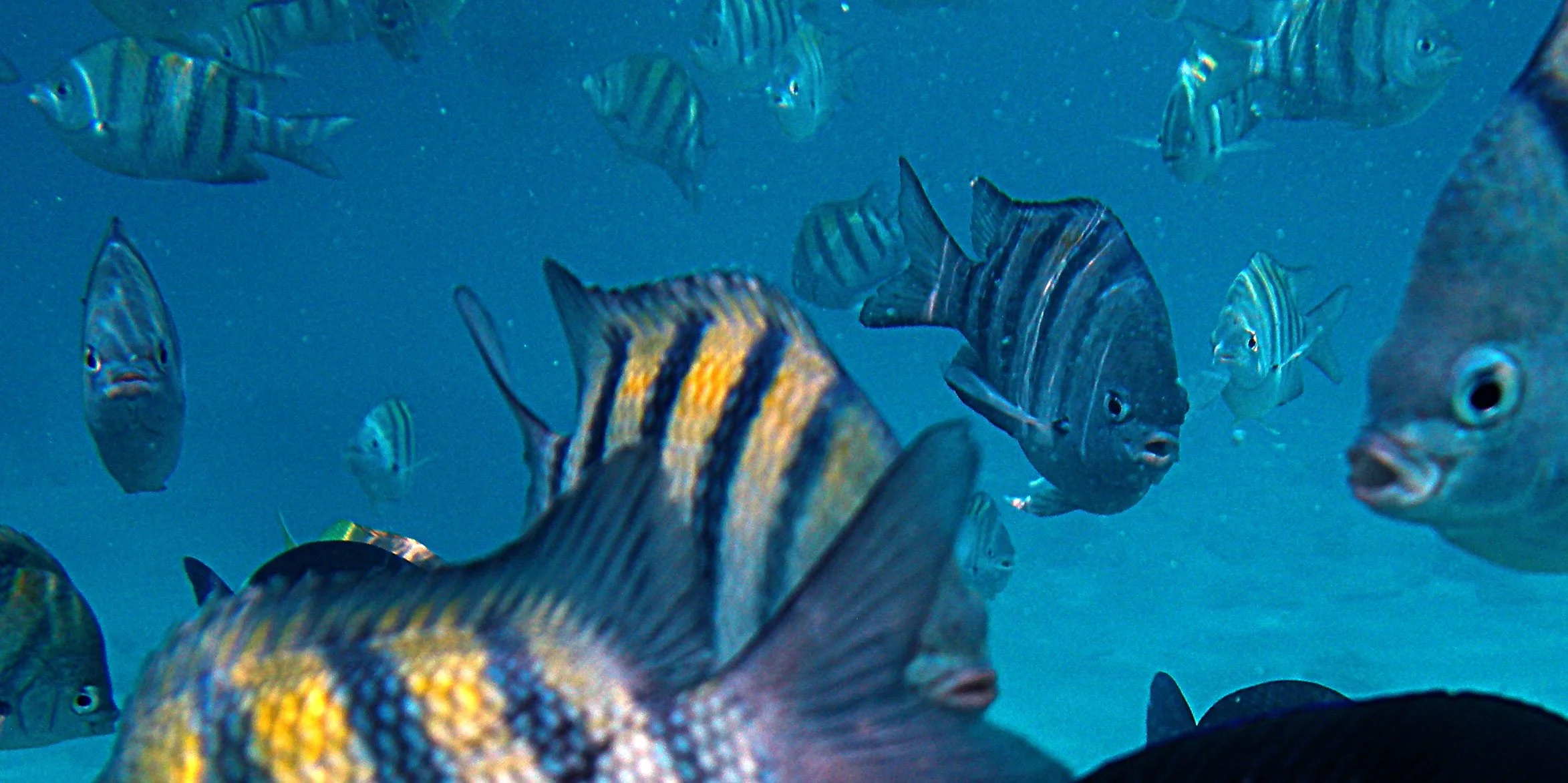 The image with the shark is from a video of Pat and I at a depth of around 90 feet in Fiji—two reef sharks came out of the deep blue and circled us. It was unusual behavior.